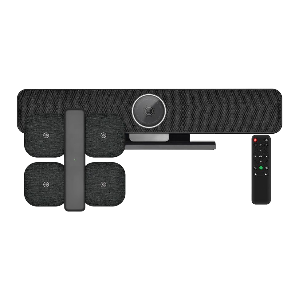 VTC-KVO5, is a new generation video soundbar design for medium rooms video collaborations.The camera is 4K with Ai face tracking and auto zooming feature, and wide view angle of 120° to cover all the participants in the picture clearly.Built-in 4 microphone arrays with 4 wireless extension mic for voice pick-up to 10m, hi-fi true voice speaker and most importantly, with smart dsp for audio processing of acoustic echo cancellation, automatic noise suppression and gain control.